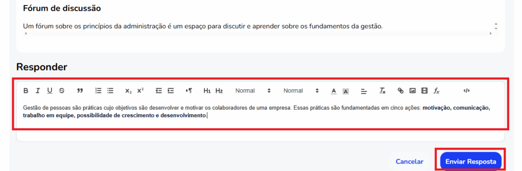 Escreva sua resposta no campo de digitação e clique em Enviar Resposta.