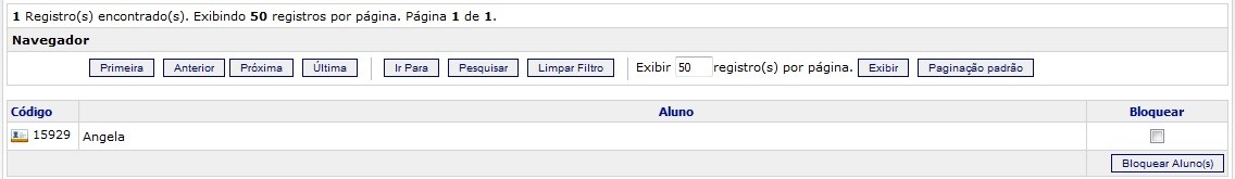 - Marque a caixa de seleção correspondente ao aluno a ser bloqueado, na coluna “Bloquear”.