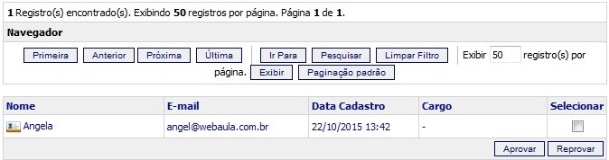 - Em seguida, acione o botão Reprovar. A mensagem “Confirma a reprovação do(s) cadastro(s) selecionado(s)?” será exibida. Clique em OK para confirmar.