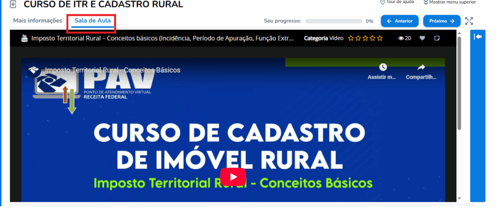A sala de aula será aberta para que a navegação no curso seja iniciada.