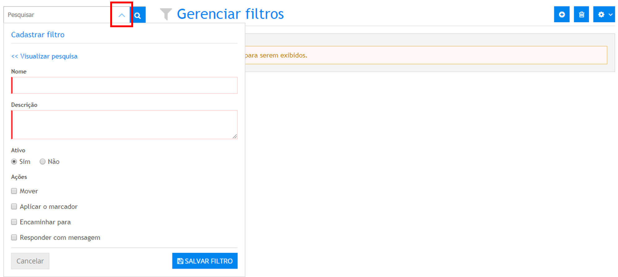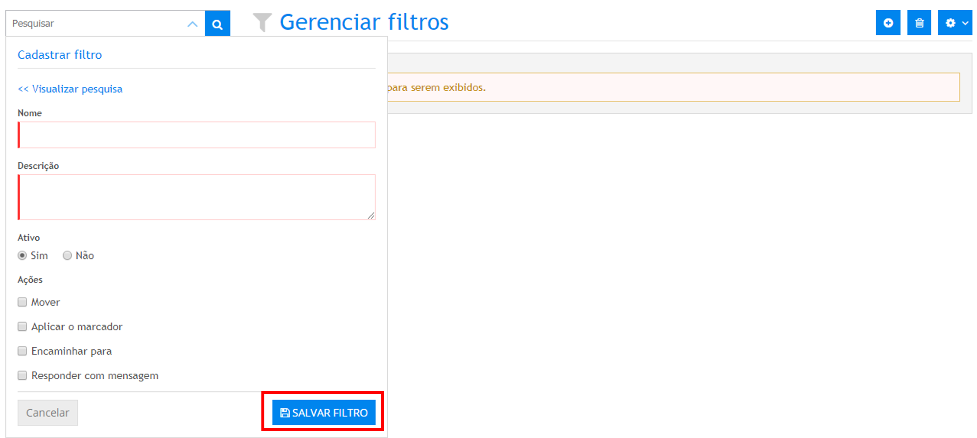 - Após preencher os campos desejados acione o botão Salvar filtro.