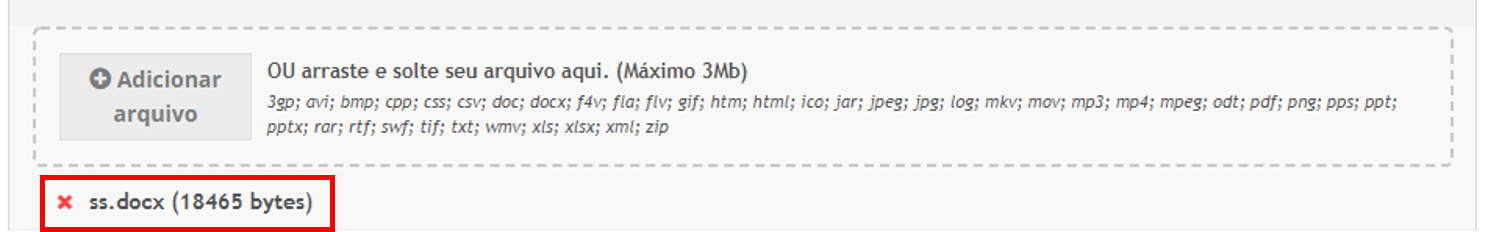 O usuário pode remover qualquer anexo clicando sobre o botão .