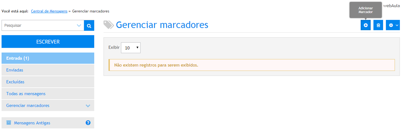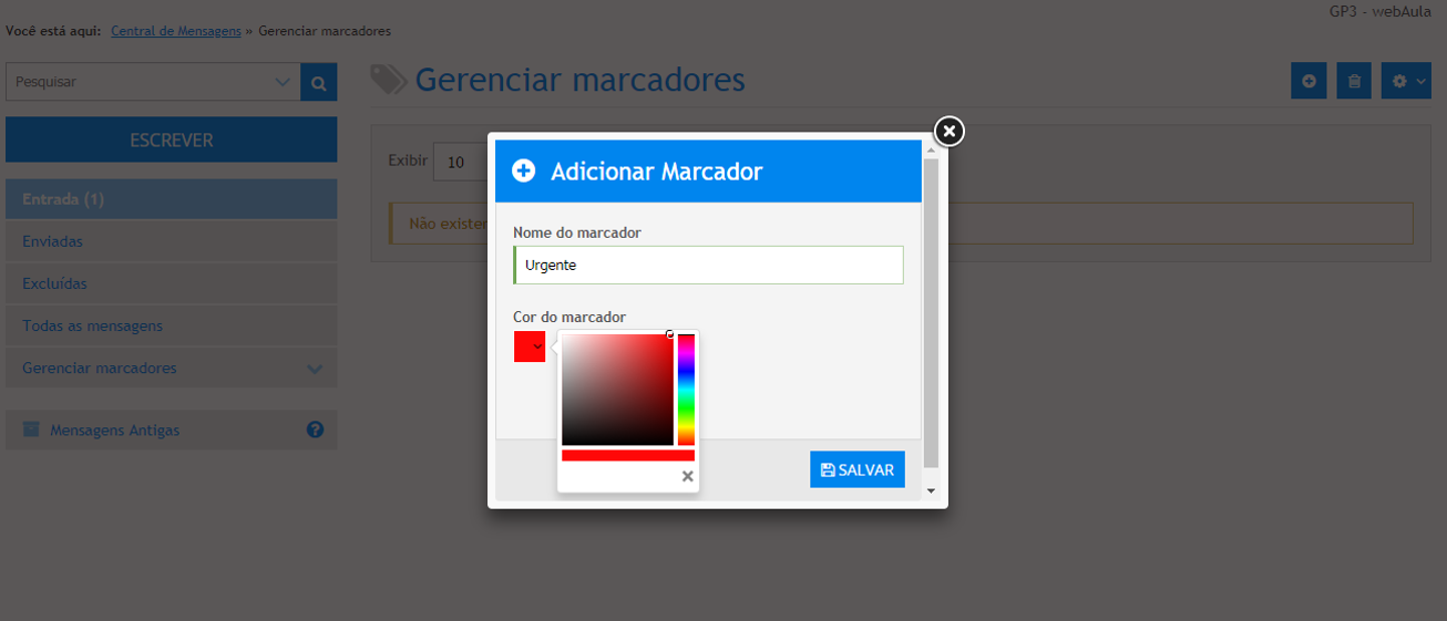 - Preencher os campos “nome do marcador” e “cor” s e acionar o link Salvar. O marcador será exibido no menu lateral.