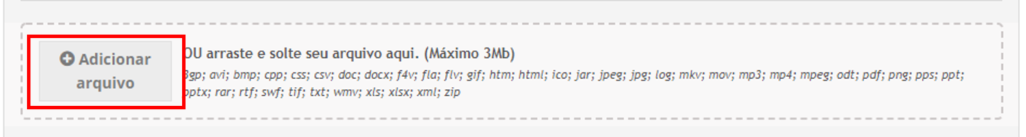 - Acionando o botão Adicionar arquivo. O sistema irá abrir um diretório onde o usuário poderá selecionar o arquivo desejado.