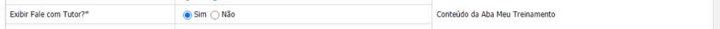 No menu Tutoria >> Exibir Fale com o Tutor?, habilitamos a exibição do fale com o tutor na plataforma, basta marcar com SIM a opção, Exibir Fale com Tutor?* .