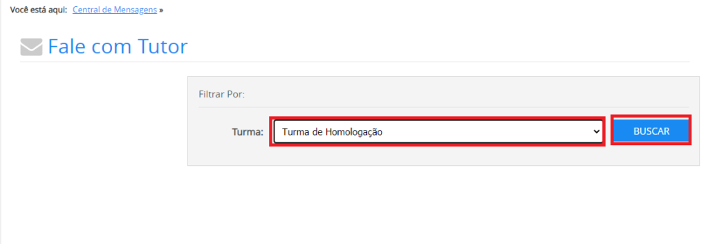 No menu Tutoria >> Fale com o tutor, selecione a turma e clique em Busca.