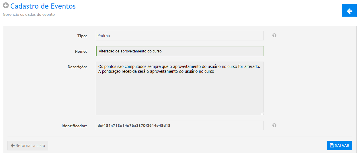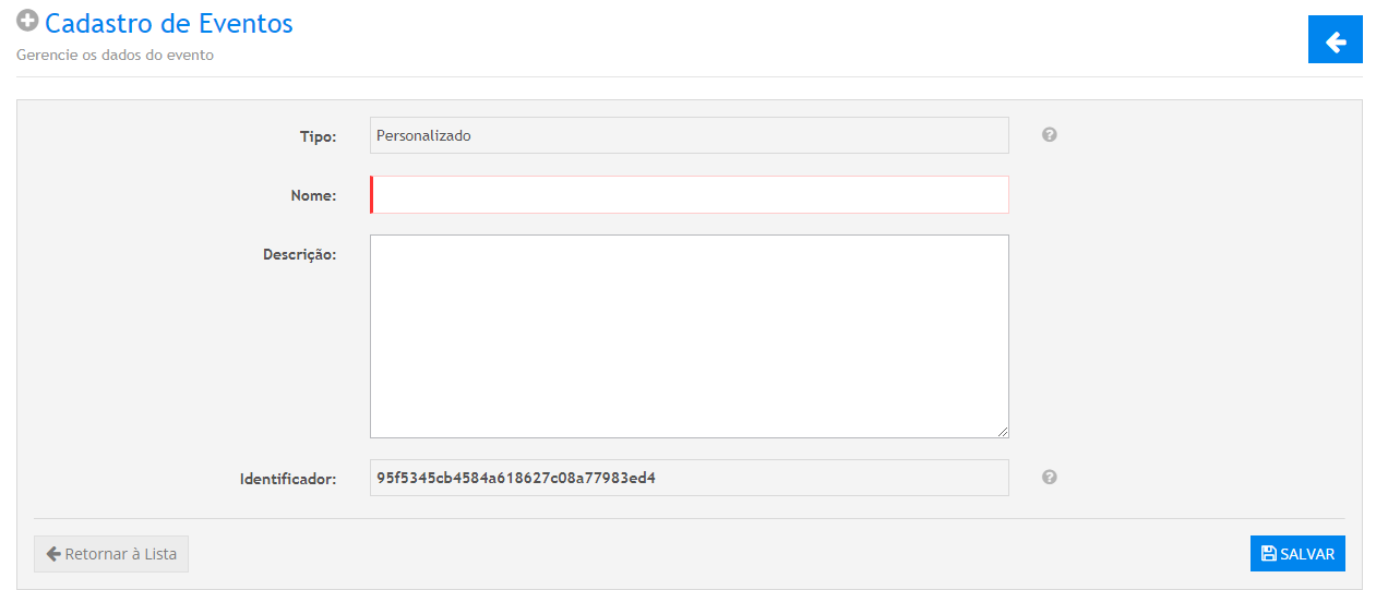 Insira o nome do evento que deseja inserir, e logo abaixo a descrição deste novo evento. Em seguida clique em salvar.