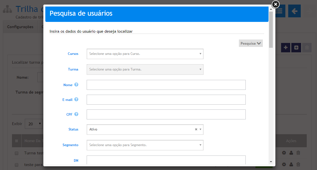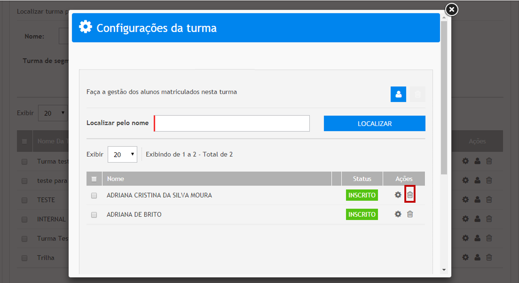 Excluindo Alunos de uma turma de Trilha de Aprendizagem