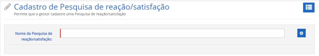 Ao clicar na opção ‘Adicionar’ o sistema apresenta a tela para cadastrar o nome da pesquisa: