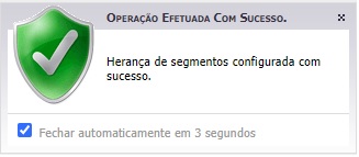 As opções de herança de segmentos são segmentos existentes e segmentos atribuídos onde será feito o processo de herança. Para escolher qual ou quais segmentos herdarão precisamos clicar no botão filtrar da opção segmentos existentes para que o sistema carregue todos os segmentos do sistema ou preencher a opção “filtrar por” para trazer um segmento específico. Após carregar, escolher o segmento(s) e selecionar para a opção segmentos atribuídos.