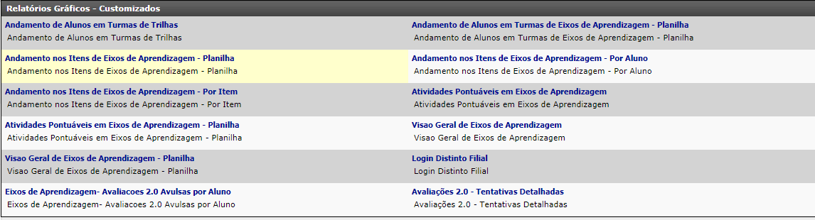 O LMS webAula possui uma grande riqueza de relatórios, possibilitando ao administrador da plataforma, acompanhar de maneira efetiva os dados referentes aos alunos e demais itens de aprendizagem. Neste tópico iremos abordar os “Relatório Customizado”.