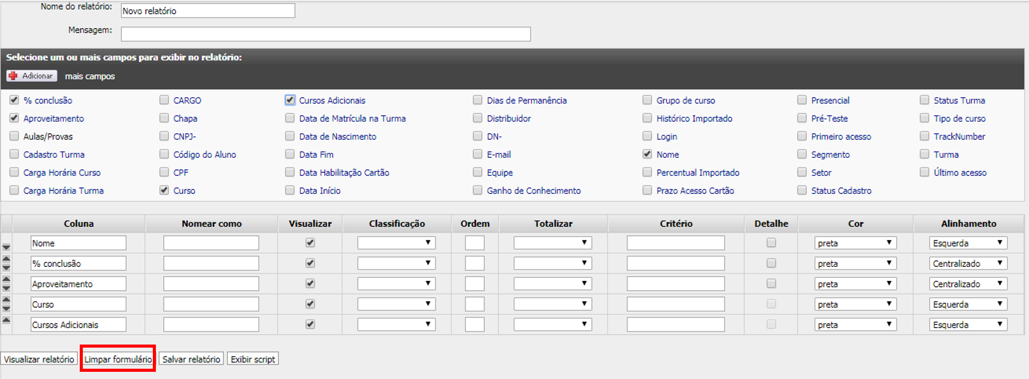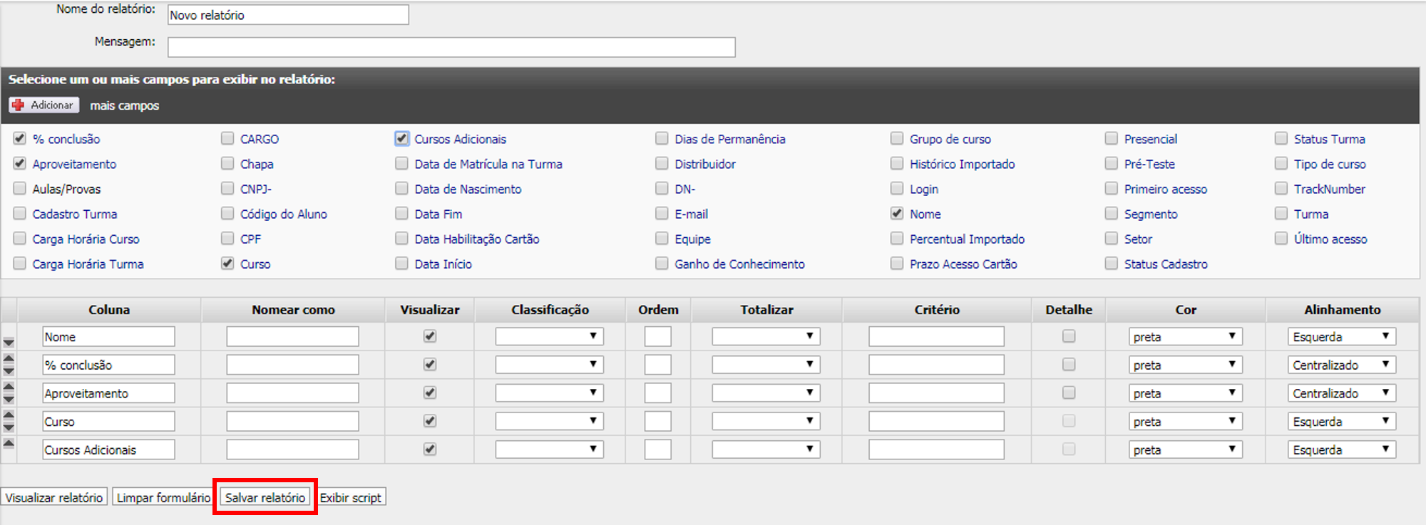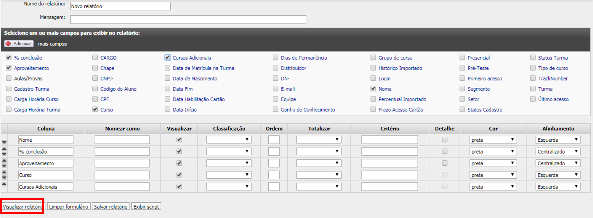 Para visualizar o relatório que você acabou de personalizar, basta clicar sobre o botão “Visualizar relatório” conforme destacado abaixo: