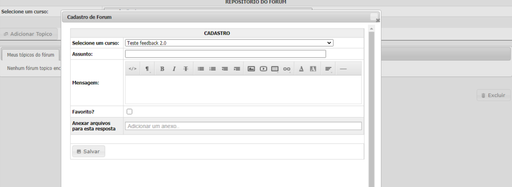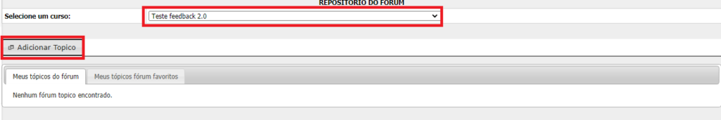 Para cadastrar arquivos para o Plano de Tutoria vá ao menu Conteúdo » Repositório » Fórum Tópicos.