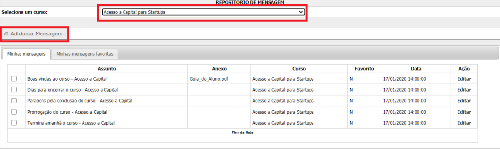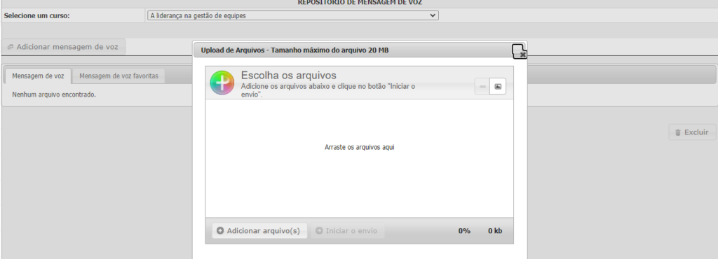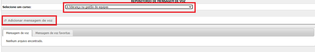 Selecione o curso e clique em Adicionar Mensagem de Voz.