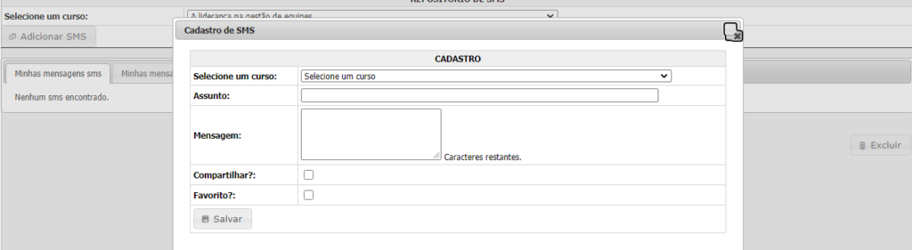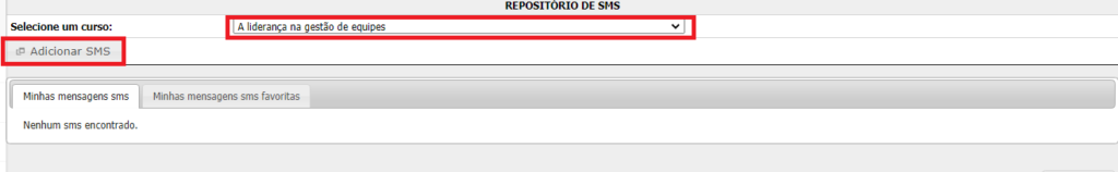 Para cadastrar arquivos para o Plano de Tutoria vá ao menu Conteúdo » Repositório » SMS.